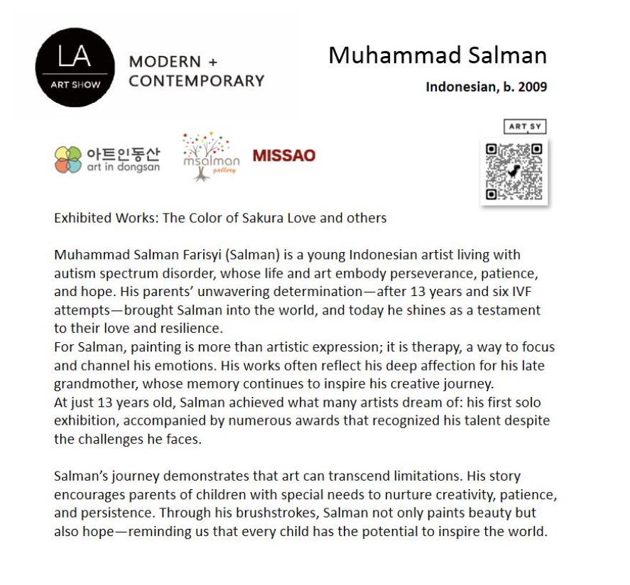 Proudly representing Indonesia, Salman will join talented artists from South Korea and the United States to showcase their finest works, in a special exhibition curated and arranged by Art in Dongsan (South Korea).